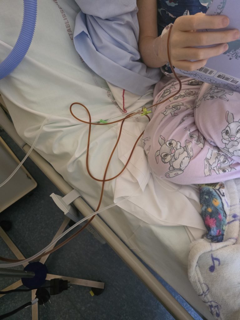 - la nutrition par jéjunostomie se passe très bien et le poids d’Elyna remonte 😀